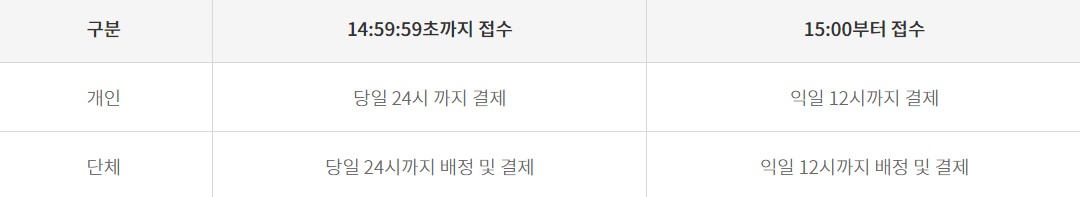 14:59:59까지 접수: 당일 24시까지 결제가능
